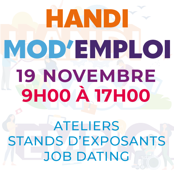 Handi Mod'Emploi est un forum permettant d’avoir accès à des acteurs nombreux et variés du monde du handicap au sein d’un même lieu. Lors de cette journée, vous pourrez assister à des témoignages et participer à des ateliers, rencontrer des entreprises qui recrutent, des institutions qui pourront répondre à vos questions administratives, des associations, des structures médico-sociales ainsi que des organismes de formation et d’orientation.